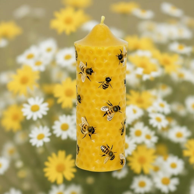 Ten okaz świecy woskowej przenosi nas w atmosferę ula. Przybliża nam zapach łąki i kwiatów. Warto kupić kiedy przychodzimy po miód.