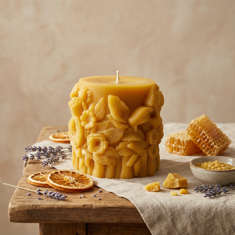 Unikatowa forma świecy wykonanej z wosku pszczelego zabarwionego.